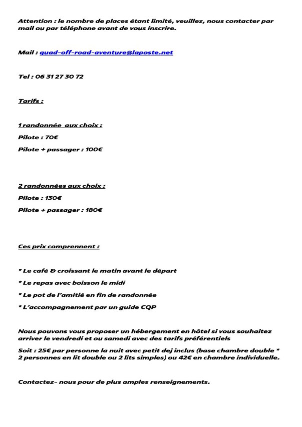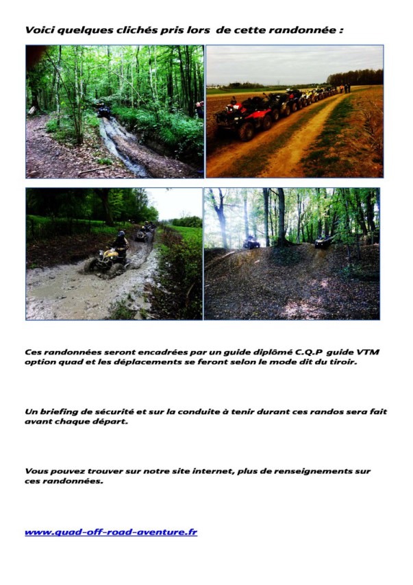Tout au long de l'année, Quad-Off-Road aventure vous propose des randonnées avec votre machine, accompagnées par un guide.